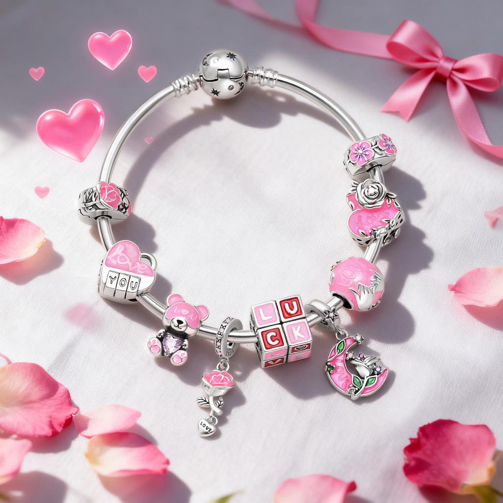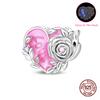 Valentine'S Day Luminous Charms Copper Pink Rose Romantic Little Bear Beads Fit Original Bracelets Diy Jewelry Gift