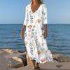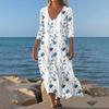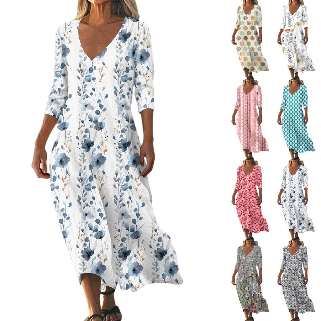 Kleider für Damen Vintage Print Tunika Tailliertes Midi-Kleid Sommer Casual 3/4 Ärmel Kleid