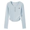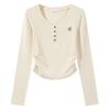 Milk blue T-shirt women's bow embroidered bottoming shirt early spring card waist pinch pleated long sleeve inside chic top