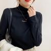 Letter embroidered semi-turtleneck bottoming shirt women's polished thermal long-sleeved T-shirt spring suit inner top