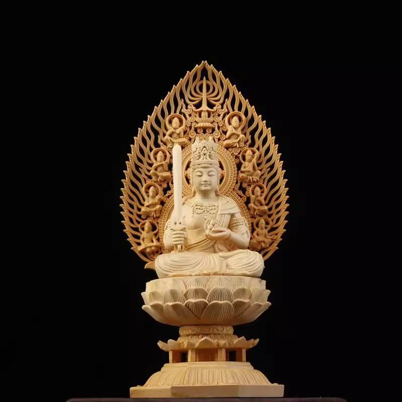 Sacred Solid Wood Sculpture, Medallion, Gautama, Patron Saint of Harmony and Prosperity, Embellishing Feng Shui