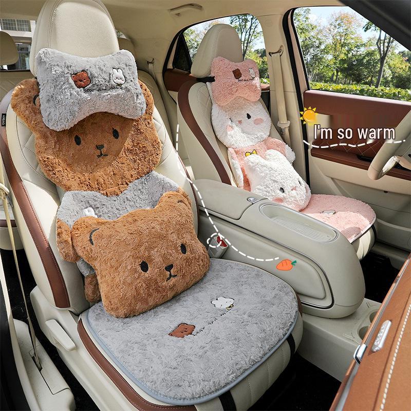 Winter Plush Car Seat Cushion - Cartoon Bear & Rabbit Design