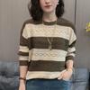 Frühling Herbst Damen Ausgeschnitten Westlicher Stil Mittleren Alters Mutter Langärmliges T-Shirt Strickpullover Locker Gestreiftes Basisshirt