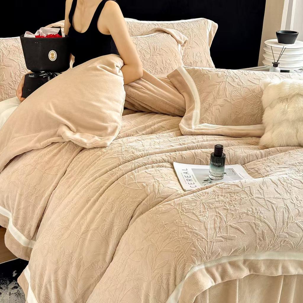 High Gram Weight Thickened Milk Fleece Four-Piece Set Double-Sided Fleece Baby Fleece Anti-Static Warm Bed Kit