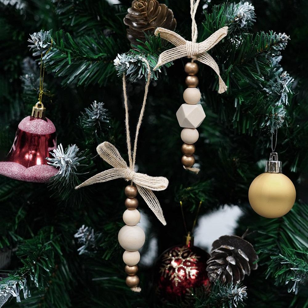 3 Stück Boho Weihnachtsbaumschmuck Holzperlen Hängedekorationen Bauernhaus Natürliche Perlen Girlande Rustikal Kleine Holzpartydeko