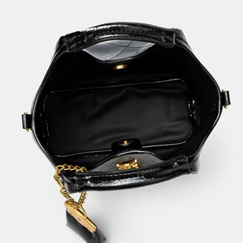 Women's Quilted Chain Shoulder Crossbody Bag New Black Soft Leather Tote Bag Shiny PU Lining