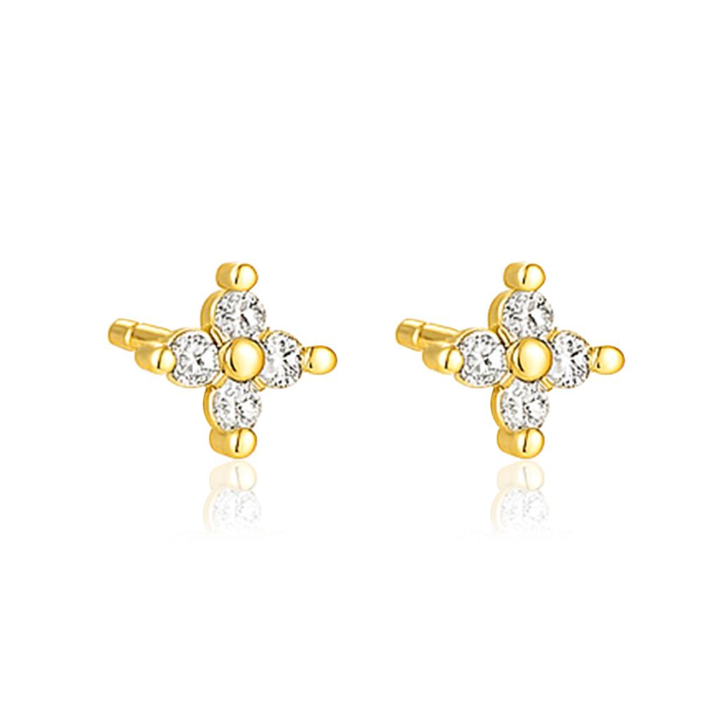 Florale Kleine Blüte Ohrstecker - Sterlingsilber Gelbvergoldet