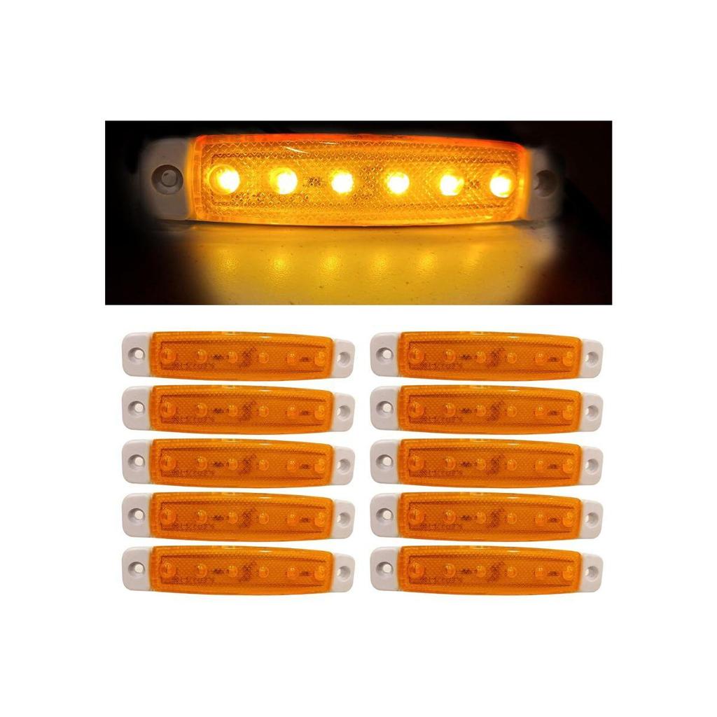 10 PCS Amber 6 LED Amber Side Marker Clearance Indicator Light for Truck Trailer RV Cab Boat Bus Lorry