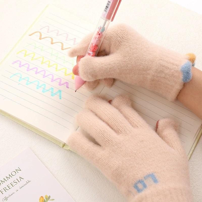 Korean Knitted Children's Gloves Cute Fashionable Warm LOVE Bicycle Gloves All Fingers Outdoor Autumn Winter Play Accessories