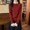 Lace splicing turtleneck soft waxy slim-fitting Andy velvet bottomed knitted sweater women's autumn and winter inner top