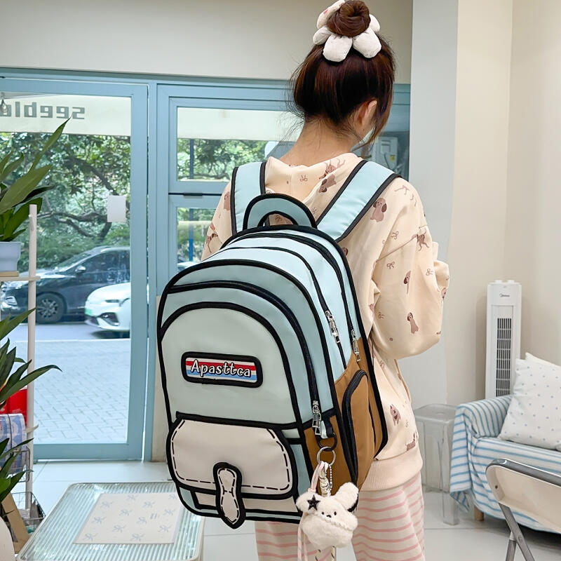 Rucksack mit großem Fassungsvermögen, 2D, Cartoon, Stereo, Schultasche für Studenten