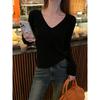 Texture pit collar front shoulder knitted sweater women's autumn and winter fashion bottoming top with long sleeves inside