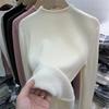 Thickened warm integrated fleece semi-turtleneck knitted sweater women's spring soft waxy inner bottoming shirt solid color top