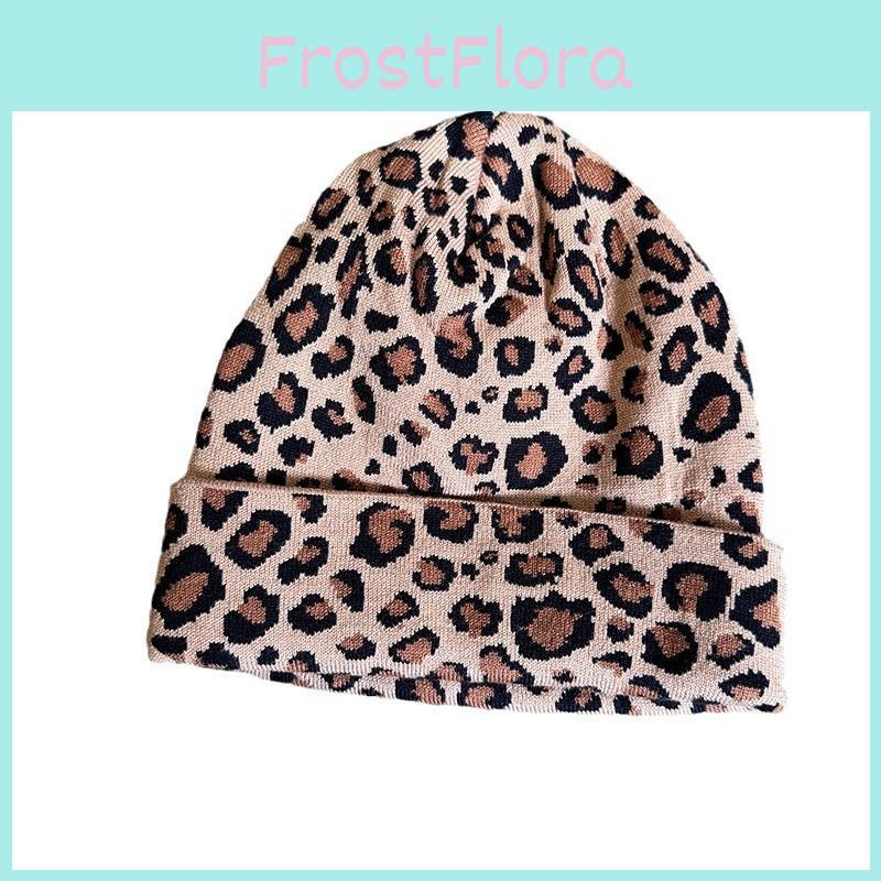 Fall Winter Knit Hat For Women With Warm Leopard Pattern Outdoor Beanie For Cold Weather