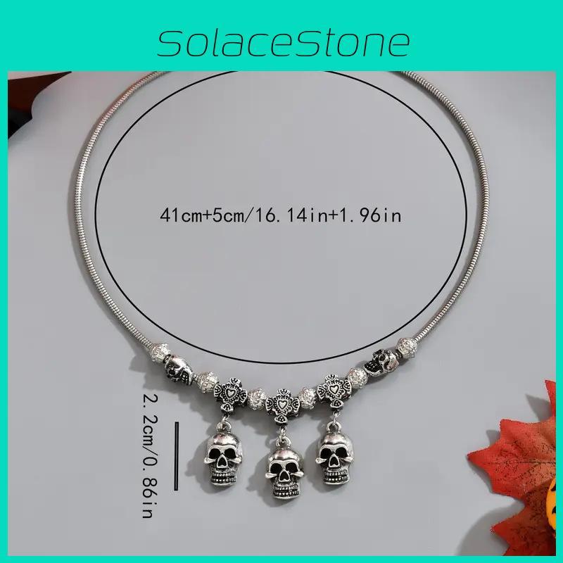 Dunkle Gothic Totenkopf Anhänger Kette Mit Mehrschichtigen Runden Fledermausgliedern Für Horror Festival Kleidung