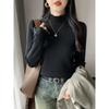 Halbrollkragen Pilzkante integriertes Fleece verdickter Strickpullover Damen Herbst und Winter schlichtes inneres Unterhemd Top