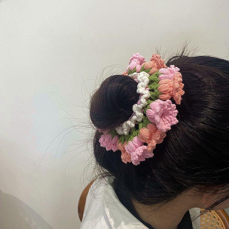 Women'S Spring And Summer Pure Handmade Crochet Flower Ponytail Headband, Meatball, Scalp Tendon Hair Rope