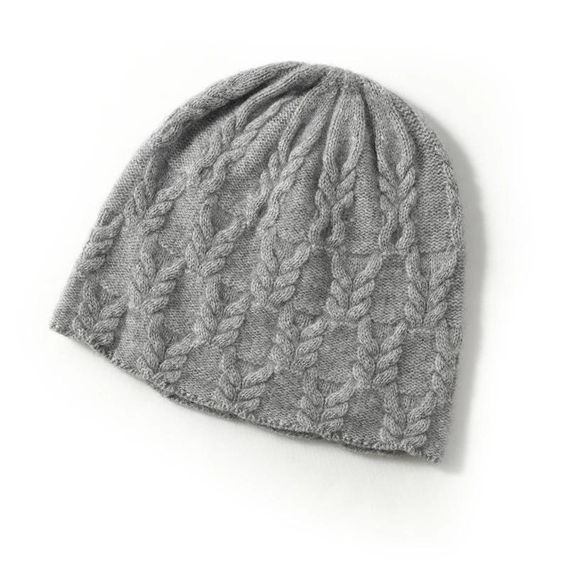 100% Kaschmir Mütze für Damen Winter Herbst Weich Warm Luxus Kaschmir Mütze Mode Blumenmuster Slouchy Skullies Mütze