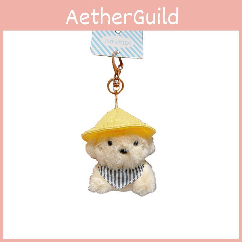 Straw Hat Dog Plush Keychain With Adorable Style For Gift And Accessories