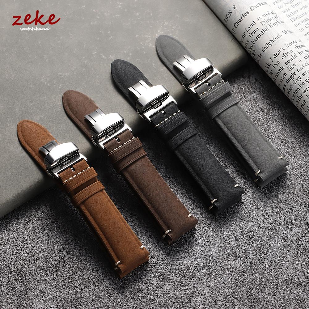 Vintage Cowhide Watch Strap 20mm 22mm Matte Leather Strap for Seiko for Omega Watchband Quick Release Butterfly Buckle Wristband