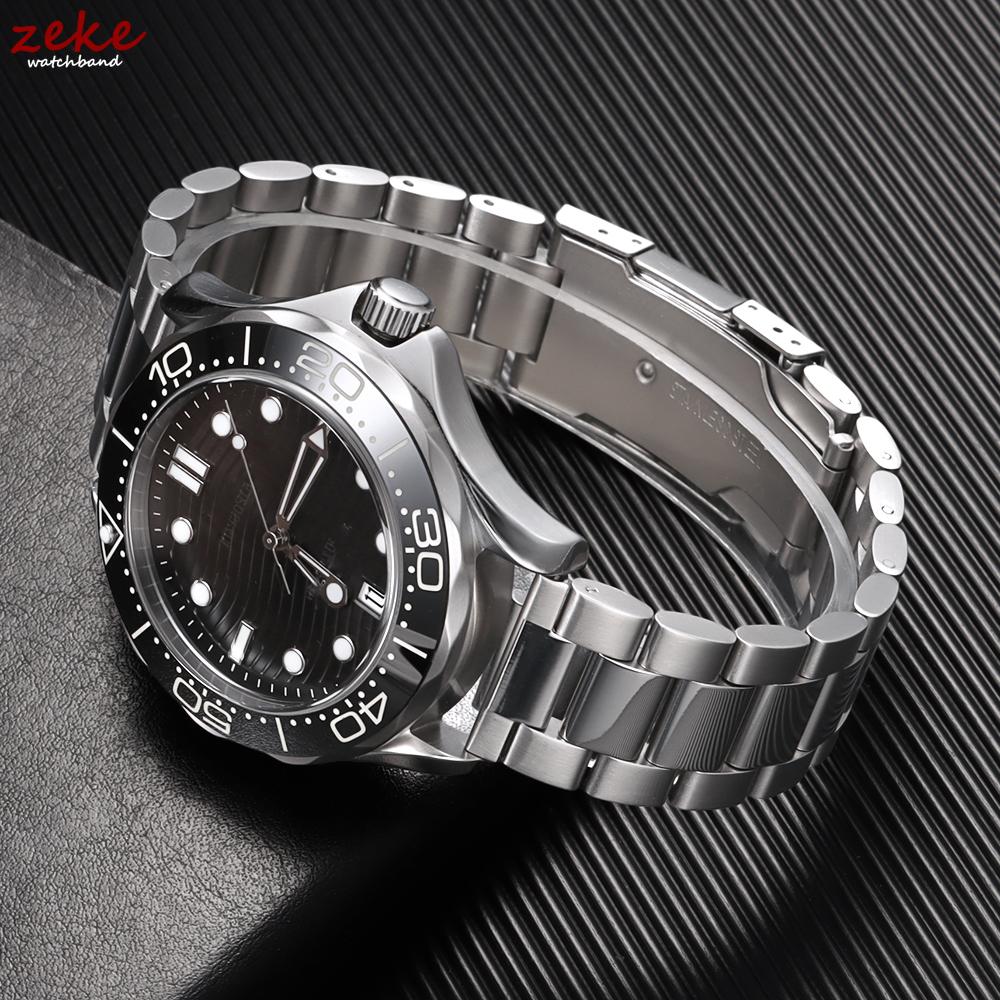Luxury Arc Flat End Solid Stainless Steel Watchband Black Silver Folding Clasp Strap 18mm 20mm 22mm Universal Watch Bracelets