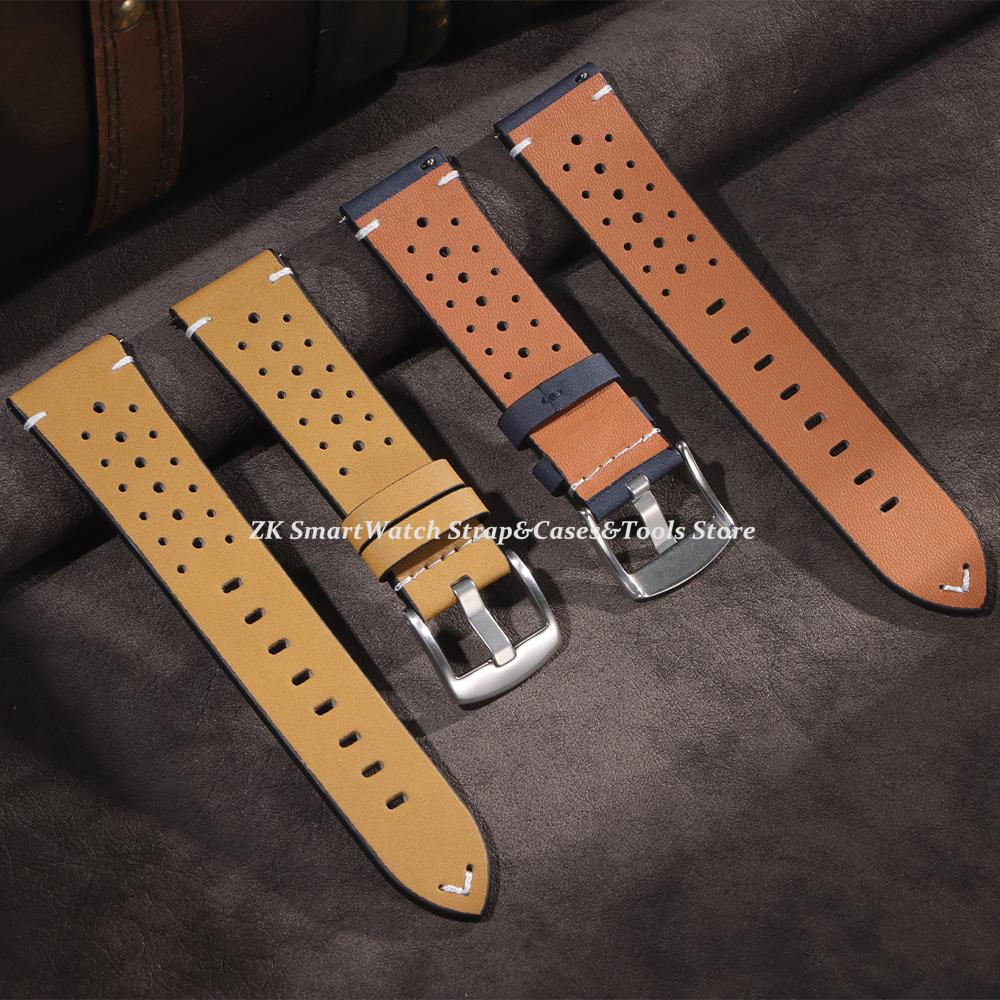 20mm 22mm Watch Strap for Huawei Gt3 Watchband for Samsung Watch Quick Release for Seiko 5 Bracelet Brown Porous Breathable Band