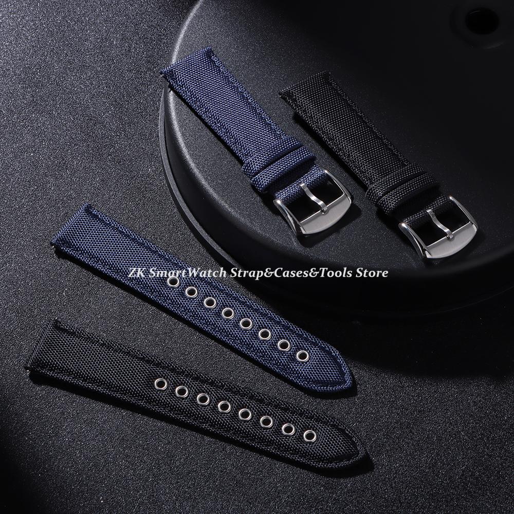 Nylon Canvas Watch Strap 22mm for Seiko Watch Bracelet Hard Waterproof Rugged Wristband Blue Black Metal Ring Bands Accessories