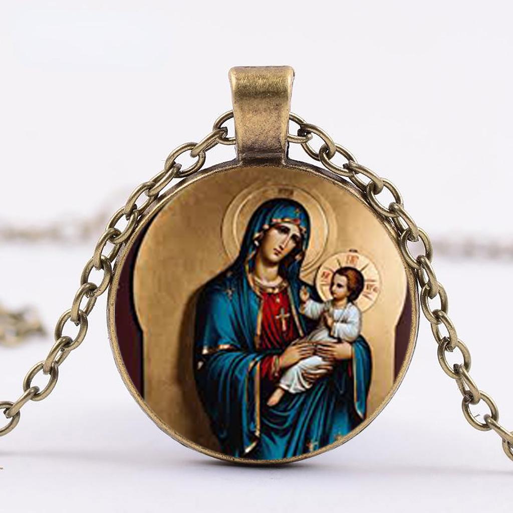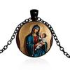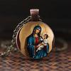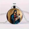 Glass Pendant Of The Virgin Mary And Baby, Christian Jewelry Painted With Oil Of Jesus, Gift Necklace For Men And Women.