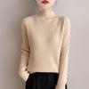Ein neuer Typ Damen-Strickpullover-Top für Herbst und Winter mit einem halbohen Kragen und einer gestreiften Basisschicht