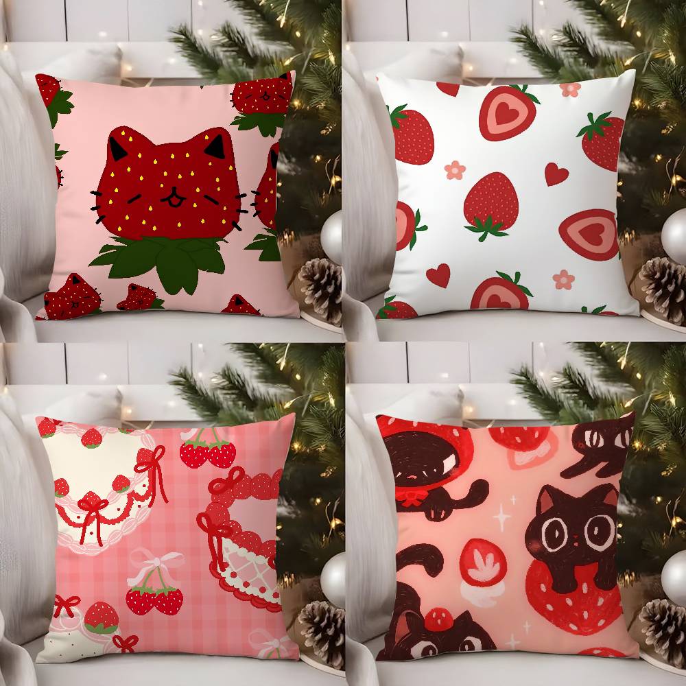 Niedlicher Erdbeerdruck Kissenbezug Sofa Wohnzimmer Schlafzimmer Doppelseitiger Druck Quadratisches Kissen Nickerchen Kissenbezug