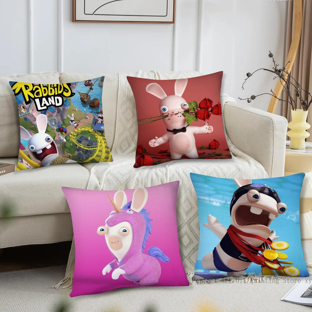 Cartoon Raving Rabbids Spiel Kissenbezug Quadratisches Kissen Schlafzimmer Sofa Freizeit Komfort Kissen Auto Wohnzimmer Heimdekoration