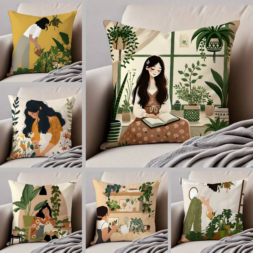 Blumen P-Pflanze G-Mädchen Kissenbezug Milbenschutz Kissenbezug Verdeckter Reißverschluss Seidiger Kurzplüsch Sofakissenbezug