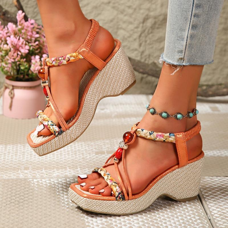 Women’s Bohemian Elastic Strap Wedge Sandals Comfortable Summer Shoes
