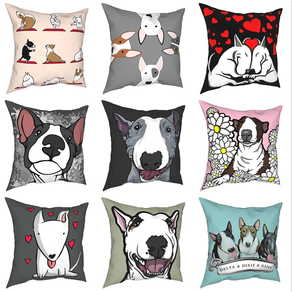Wohndekor Lustig Niedlich Bullterrier Muster Druck Kissenbezug Polyester Kissenbezug Dekor 45x45cm