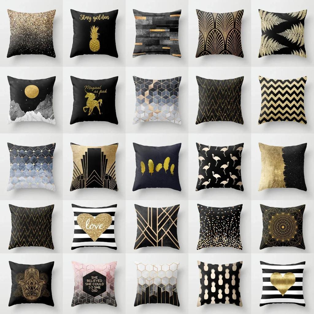 Brandneue Gold Schwarz Marmor Geometrische Kissenbezüge Polyester Modern Dekorative Wurfkissenbezug Sofa Autositze Kissenhülle