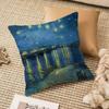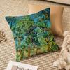 V-Van Gogh Ölgemälde Druck Kissenbezug Milbenschutz Kissenbezug Verdeckter Reißverschluss Seidiger Kurzer Plüsch Sofakissenbezug