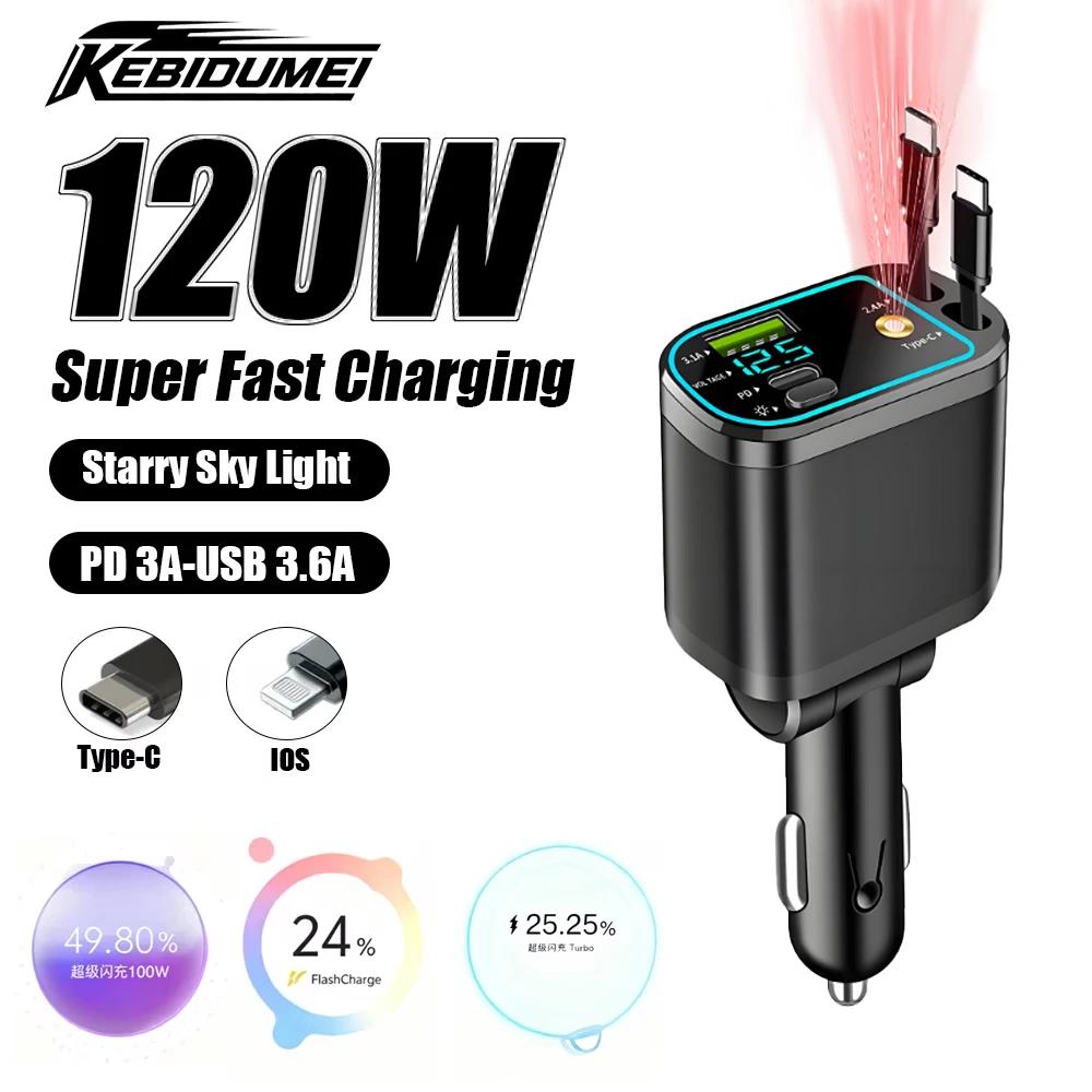 M4 5-IN-1 Einziehbarer Autoladegerät Schnellladung 70cm Kabel 20W PD Typ-C USB-Anschluss Netzteiladapter Autozubehör