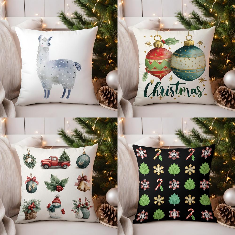 Home Decor Adorable Snowflake Llama Pillow Cover Pattern Cushion Cover Suitable for Sofa Bedroom Car Pillow Cover