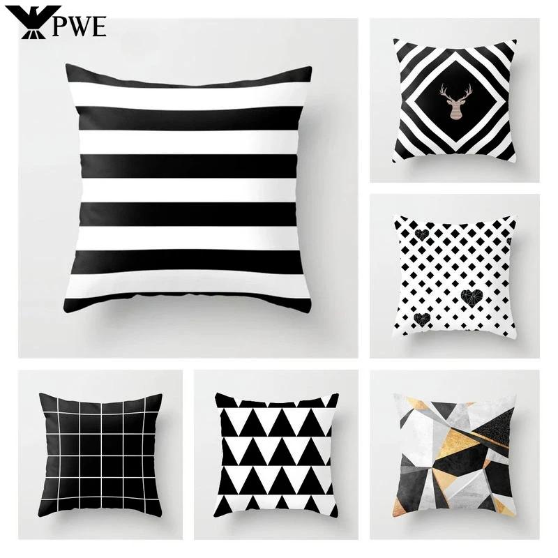 Nordischer Schwarz-Weiß Kissenbezug Polyester Geometrischer Kissenbezug Dekorative Sofakissen Mode Kissenbezug 45*45CM