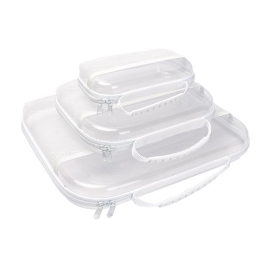 Transparente wasserdichte Kulturtasche Hartschalen-Aufbewahrungskoffer mit Netztasche Reise-Organizer mit Griff Trocken-Nass-Trennung
