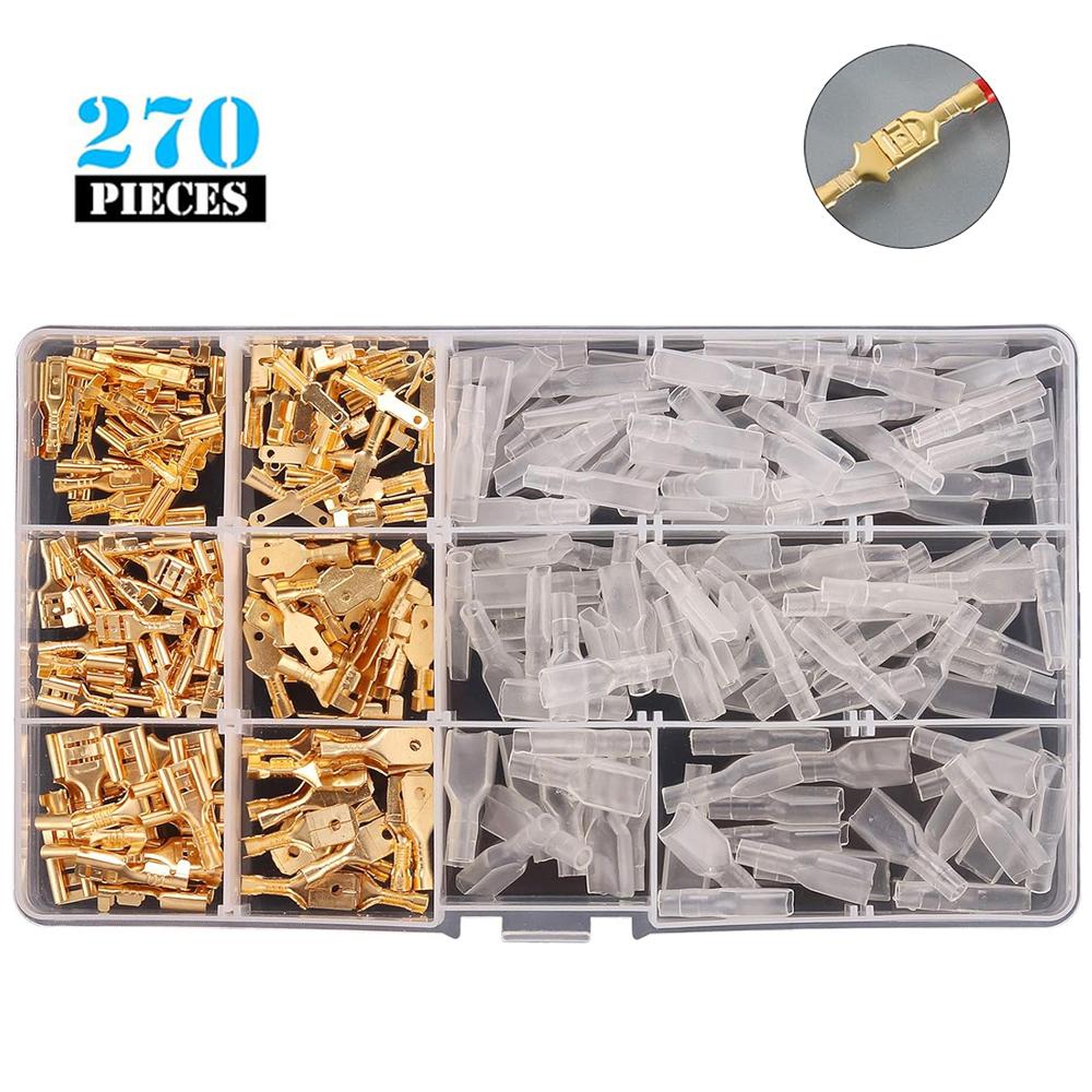 270Pcs 2.8/4.8/6.3mm Insulated Male Female Wire Connector Electrical Crimp Terminals Termin Spade Connectors Assorted Kit Box