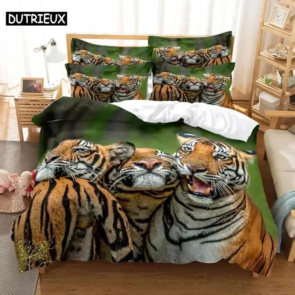 Luxuriös Neu 3D-Druck Tiger Bequemer Bettbezug Bettdecke Kissenbezug Bettwäscheset Kinder Schlafzimmer Dekoration Heimtextil