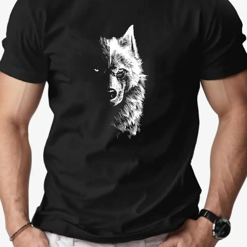 Men's Beige T-Shirt - Minimalist Wolf Graphic Tee for Everyday & Formal Outfits
