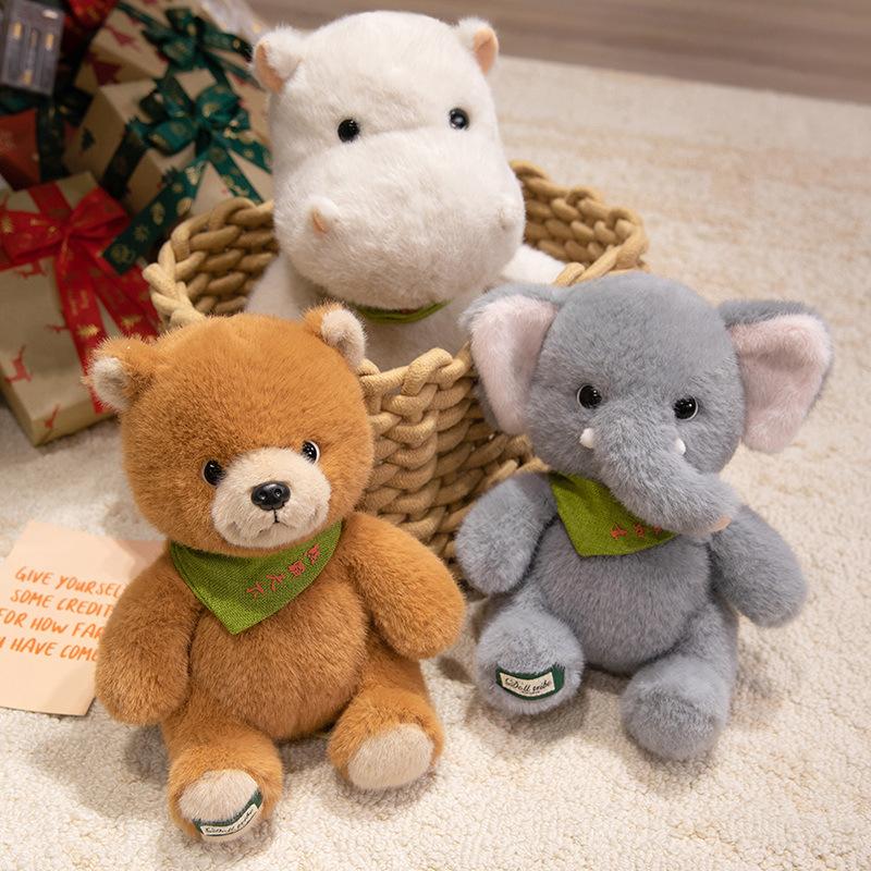 Cartoon Cute Hippo Doll Plush Toy Bear Elephant Doll Children Soothing Rag Doll Girl Birthday Gift