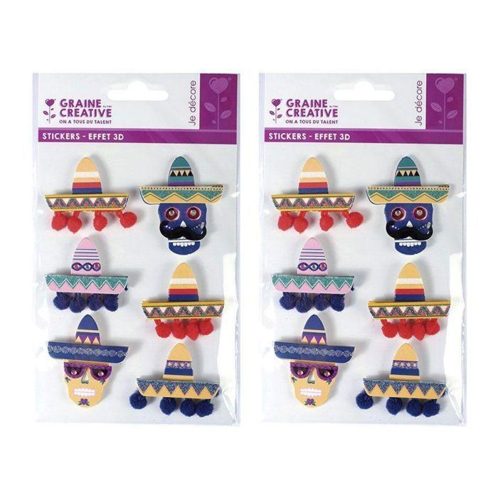 Stickers 3D - GRAINE CREATIVE - Chapeaux mexicains - 5,5 cm - Multicolore - Mixte
