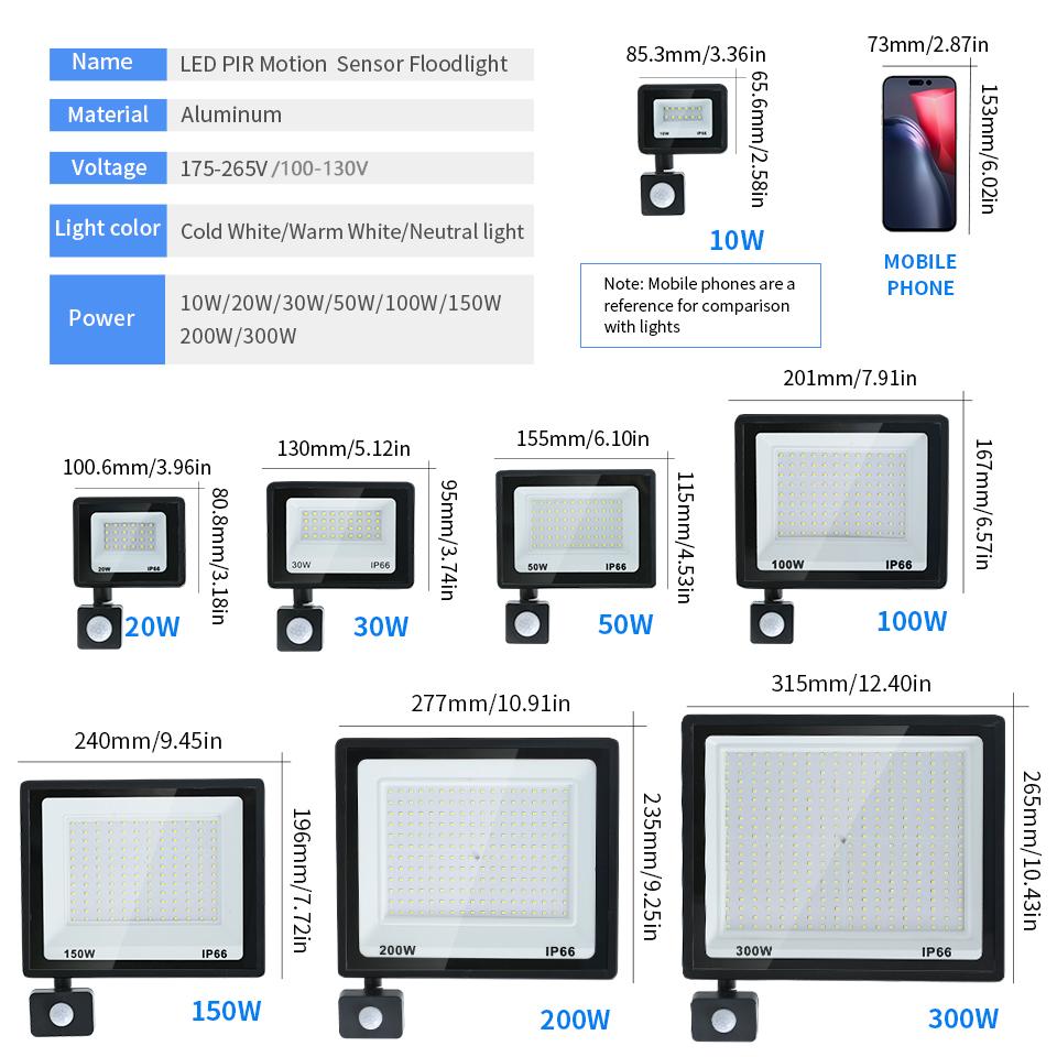 LED Floodlight Motion Sensor AC220V AC110V 10W-300W Waterproof Outdoor Projector Exterior Spotlight Outdoor lamp Wall Reflector