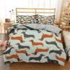 Dackel Bettbezug Set Cartoon Welpe Ultraweich Atmungsaktiv Bettdeckenbezug mit Reißverschluss Erwachsene und Kinder Hund Queen King Bettwäsche