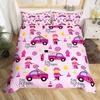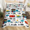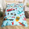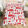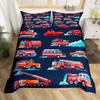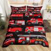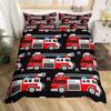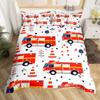 Cartoon Feuerwehrwagen Bettbezug Full Queen King Rot Auto Stadt Rettungsfahrzeuge Bettwäsche-Set, Aquarell Flammen-Druck Bettdeckenbezug