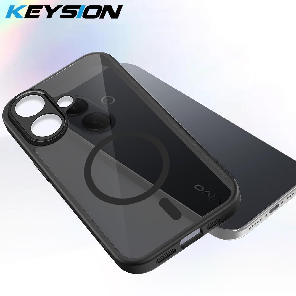 KEYSION Magnetic Phone Case for VIVO V60 Lite 5G Soft Silicone+PC Matte Translucent Clear Shockproof Back Cover for IQOO Z10R 5G