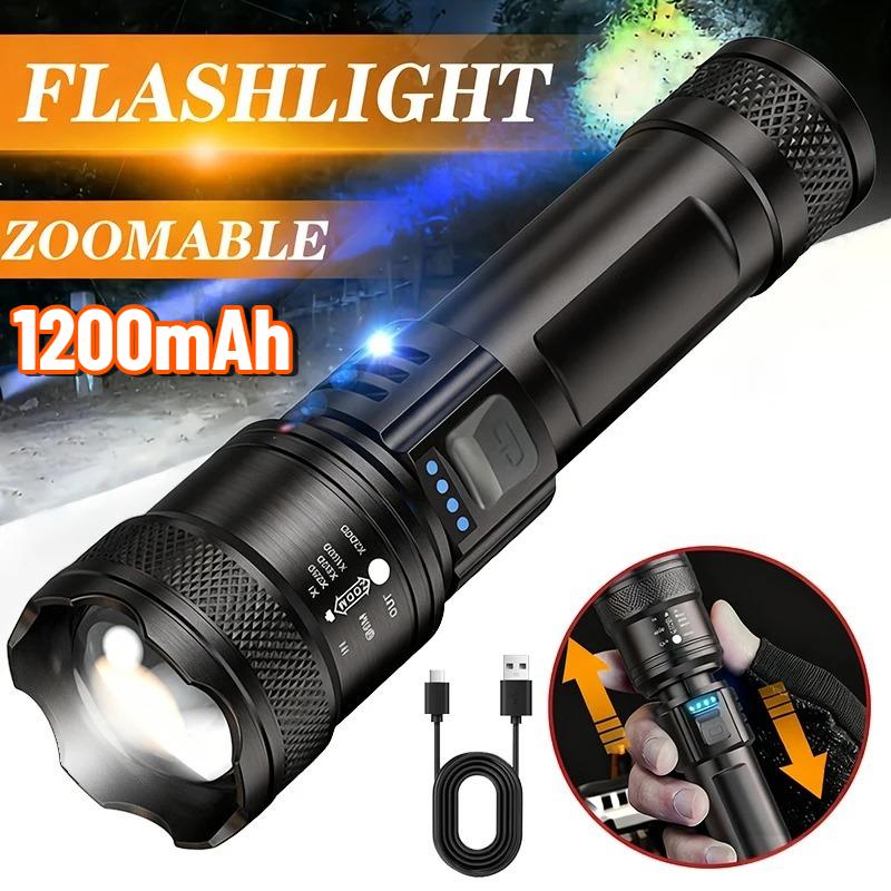 Leistungsstarke LED Taschenlampe Batterieanzeige USB Wiederaufladbares Licht Teleskopzoom Taschenlampe Lampe Outdoor Camping Angeln Laterne